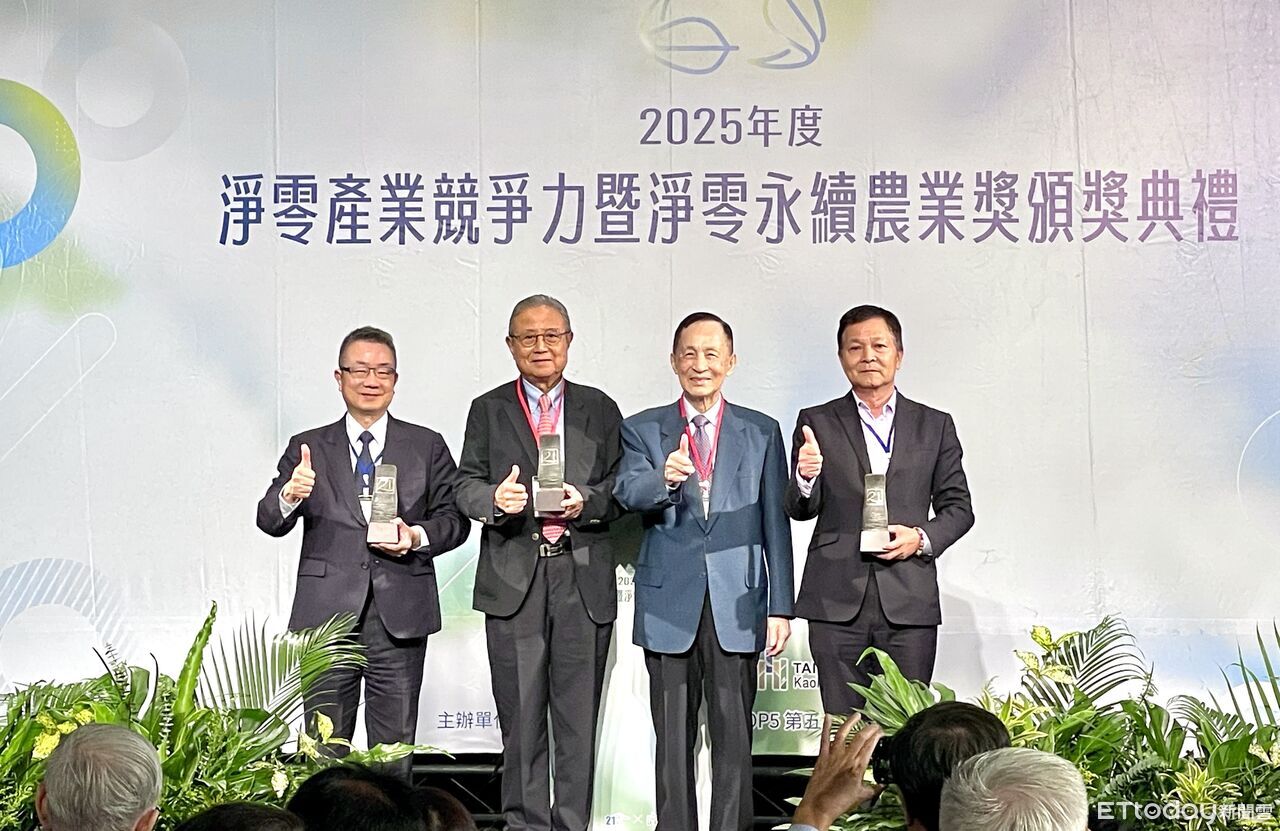 ▲東森自然美榮獲「2025年度淨零產業競爭力暨淨零永續農業獎」中「兩岸碳中和卓越獎」殊榮,由東森集團副總裁、東森自然美董事長廖尚文(左1)代表出席領獎。(圖/東森購物提供)